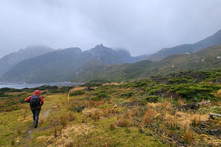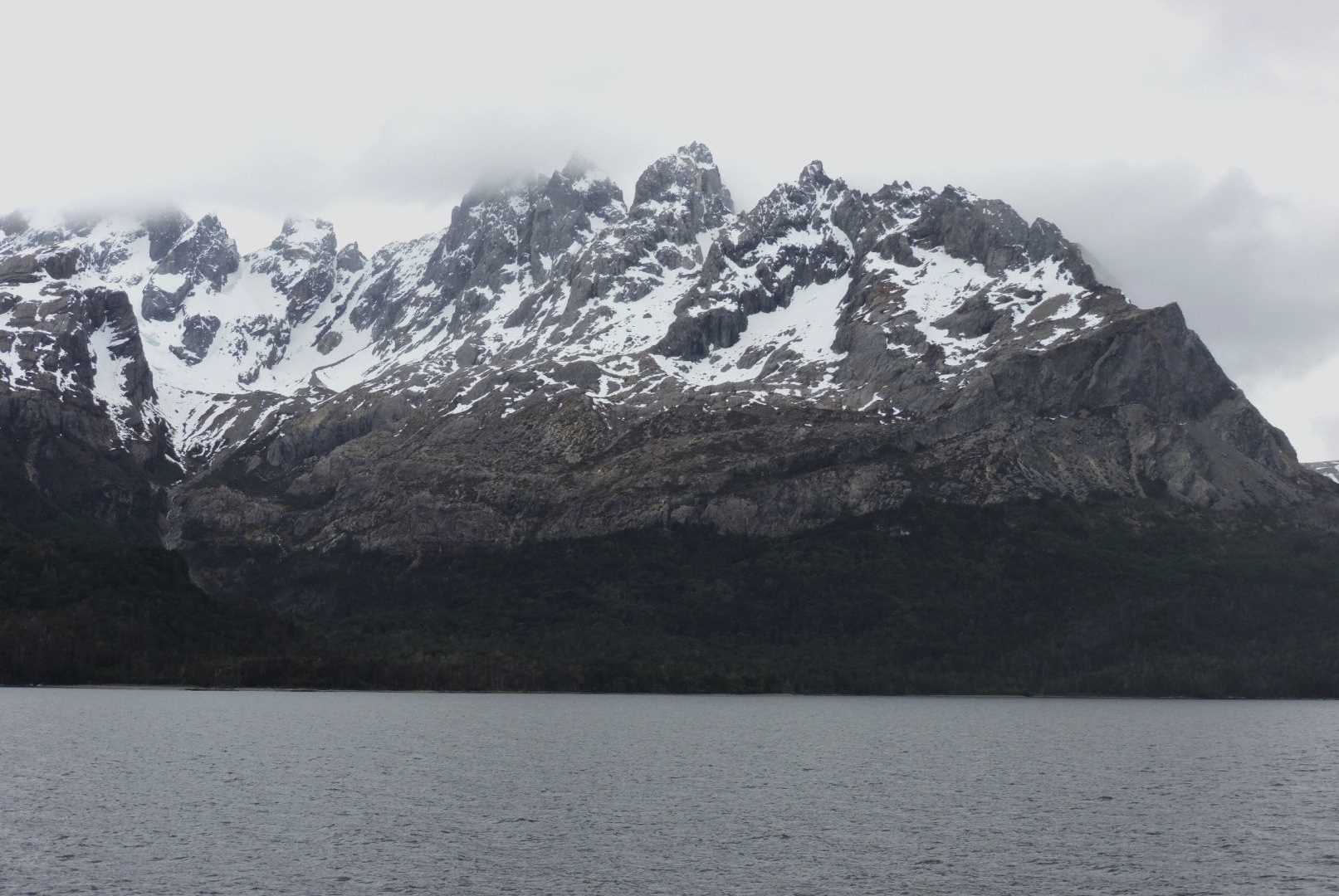 Conditions improved as we got into more protected waters in the late morning. The mountainous scenery is very impressive with obvious tree lines and snow lines. It is amazing how much vegetation exists in this rugged rocky environment. Much of the area is covered with thick growths of southern beech forests, often existing where one would think it impossible. These beech trees have the ability to grow in very thin soils and somehow hold onto the rocky substrate, in spite of devastating winds that can occur throughout the year.