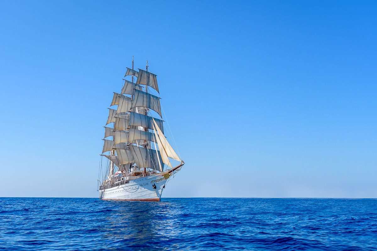 After a long few days traveling, we finally got the chance to sleep in and awoke this morning well rested and excited to explore Sea Cloud. We enjoyed a tasty breakfast before meandering upstairs to reserve our seats and study our handouts of the sails and their names. Our First Officer, Phil, took the microphone and began to explain the process of setting the magnificent square sails. We followed along as best as we could while he described exactly what the sailors were doing as they danced around between the yards on the foot ropes.
