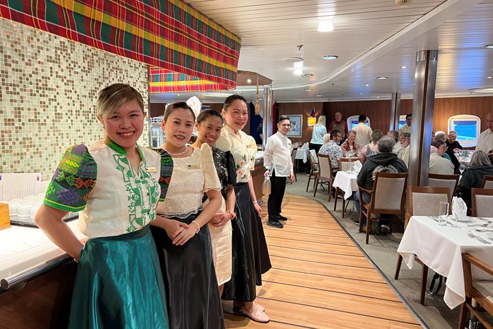 A fresh wind and precipitation followed us throughout the day, but the air temperature is rising along with the humidity, something the crew aboard this ship has not felt in many months. Moving north will slowly bring with it new species of animals as well. Many eyes stayed glued to the windows even though rest and relaxation were key components to the day; all preparation for an exciting 3 days ahead on the islands of Tristan da Cunha.