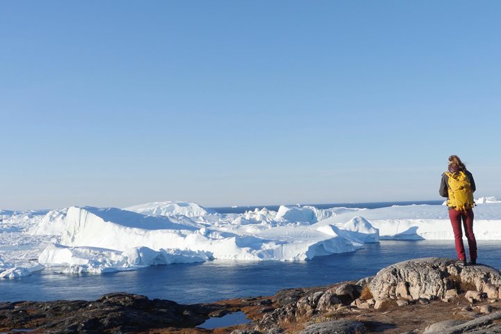 Today started early this morning aboard the National Geographic Explorer. But in the land of the midnight sun, the only way one would realize the time is by looking at a clock. And since polar bears do not follow our preferred schedule onboard, we eased out of our cabins a few hours before breakfast when we heard the call that we should get out on deck. We were met with spectacular golden light from a low hanging sun and a young male polar bear with his nose in the air, slowly making his way toward the ship, and a hooded seal resting on the edge of the ice pack. While the young bear jumped, swam, rolled and rested right in front of us, we also spotted five more bears in the distance. Eventually our visitor bid us farewell and left us so we headed out to our next stop down the coast.