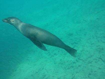 After returning to the ship for breakfast, we set out again. This time we went to a small golden-colored beach, where we snorkeled with penguins, rays, and different species of fish. We also took our glass-bottom boat for a ride along the coast of this nice calm bay and saw just as much as the snorkelers did.