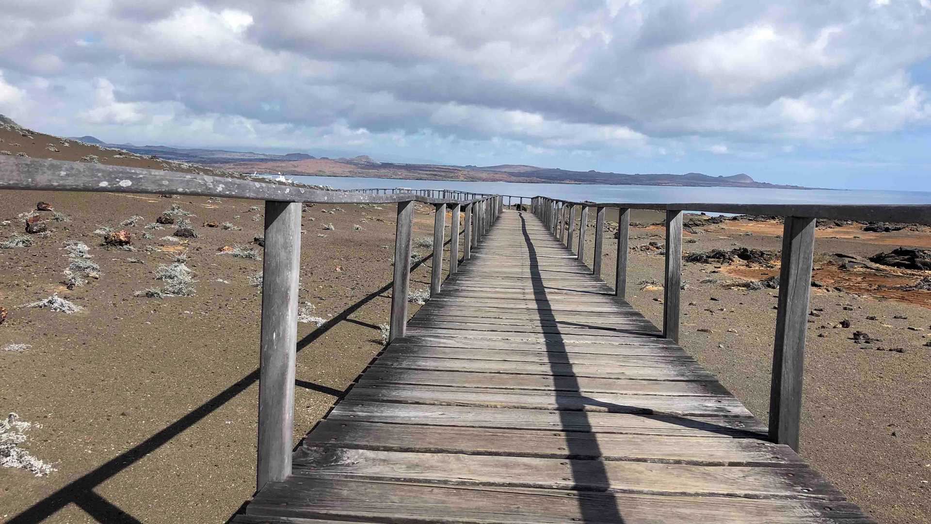 Early this morning, we disembarked at Bartolome beach for a stretching session with our wellness specialist while enjoying the sunrise colors. After breakfast, we started our walk to the top of Bartolome Islet, one of the most famous landscapes of the Galapagos Islands. Bartolome is an incredible site for geologists, since here you can find spotter cones, scoria, and tuff formations. Our Global Explorers spent the morning swimming and snorkeling from the beach, spotting baby stingrays, blue-chin parrotfish and rainbow fish. We also had the glass-bottom boat available for our guests who preferred to enjoy the Galapagos underwater life with interpretation from our naturalists. While they saw it from above, we were deep water snorkeling in warm waters with penguins—this may be the only place on the planet where we can spend more than one-hour swimming with penguins.