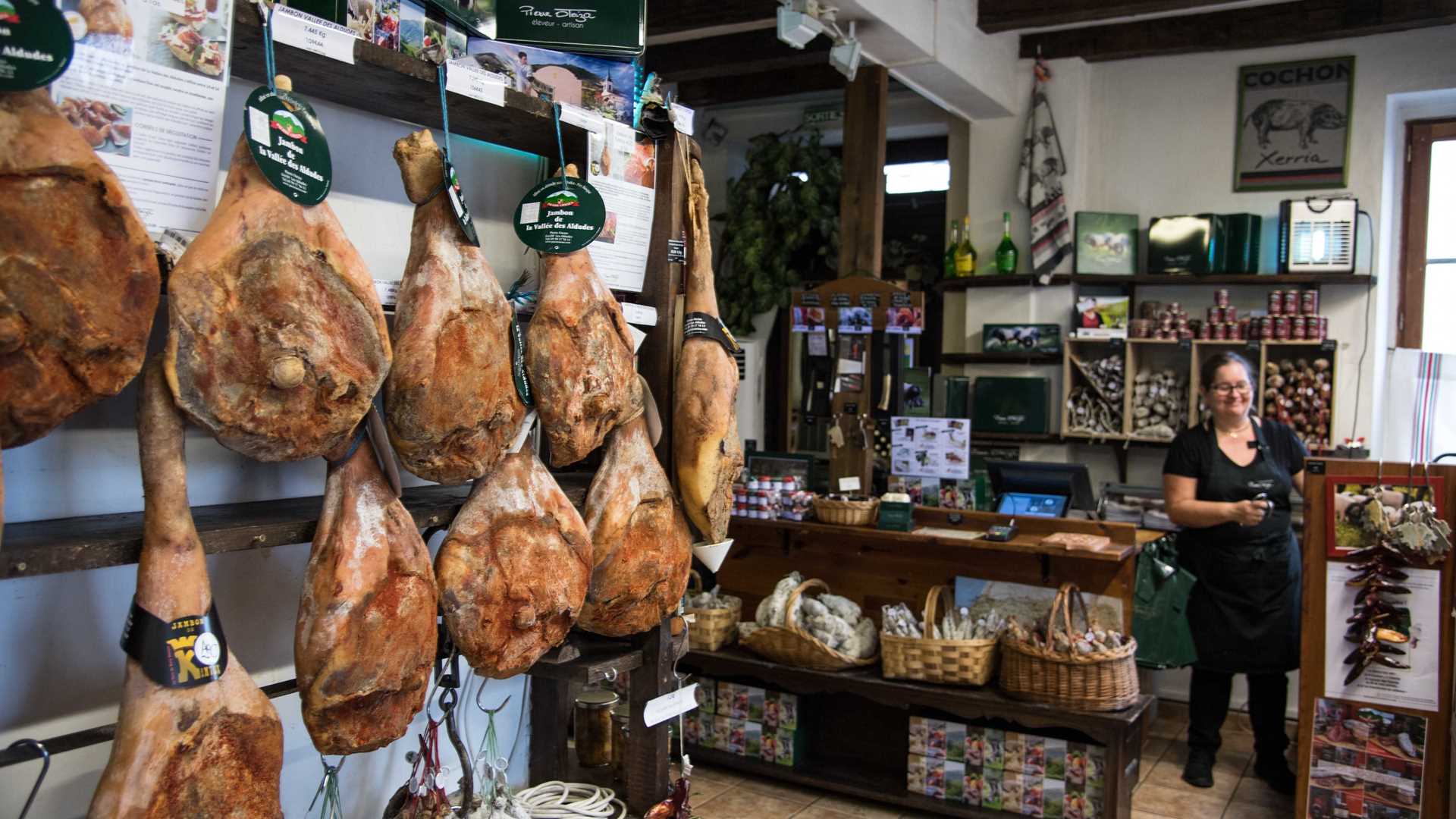 We arrived in Bayonne, which is known for several things: the invention of its eponymous bayonet, Bayonne ham, and chocolate. Bayonne saw some of the first imports of chocolate from the New World into the Old and artisan chocolate makers abound in the region, one of which we visited today. A tour into the Basque countryside saw us visit the picturesque village of Aïnhoa, with its seventeenth-century church of Our Lady of the Assumption and its wide central street, the latter forming part of the historical camino route to Santiago de Compostella. Espelette, also part of our tour, is internationally famous for its paprika production. We had cider and Bayonne ham at a traditional Basque farmhouse, preserved in seventeenth-century style complete with period furnishings. The owner explained the spiritual importance of the Basque house (etxe) to Basque society before serving us delicious homemade cider, Bayonne ham, and sheep’s cheese.