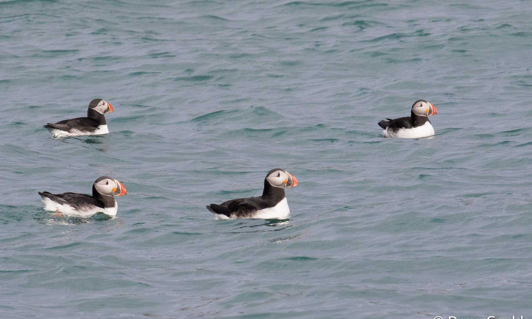 Fingers cold, memory cards loaded with megapixels of memories we turn back to the south. On the way back to National Geographic Explorer we move further off the coastline and drift amongst the rafts of the seabirds. Guillemots are the most numerous and part around our Zodiacs by paddling out of our path. These birds are much better swimmers than fliers. As we get close, many patter or bounce across the surface to evade us, but most choose to dive below rather than flying away. For these auks, swimming and chasing their prey fish underwater means they have small wings and high wing loading. Taking to the sky takes effort and it is easy to imagine why they choose to nest on the towering cliffs. Now we are sufficiently cold and increase our speed and bounce across the sea back to the ship.