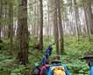 For some a climb uphill, along a boardwalk and skirting a cliff trail brought us to a bridge where we could actually stand over and look down into the confusion of water. The verdant greens of false lily of the valley, queen’s cup, and twisted stalk carpeted the forest floor. Licorice fern draped itself from tree branches and devils club stood as multi-stemmed umbrellas.