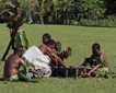 After a scrumptious and bountiful breakfast we slipped into boots and crossed to the Casual Community to hike their nature trail. Today locals foraged in the jungle leaf litter and streams and brought us things to see up close: a tarantula, a small green anaconda, and a couple of different species of poison arrow frogs. They found a sloth and one lucky group got to see her come down the tree to take care of her bodily needs and then very slowly crawl across the ground! We admired huge ficus trees and myriad liana vines. Back at the banks of the river we had a chance to buy handicrafts made using the chambira palm fiber and woodcarvings. As we motored back to the boat it began to pour—excellent timing!