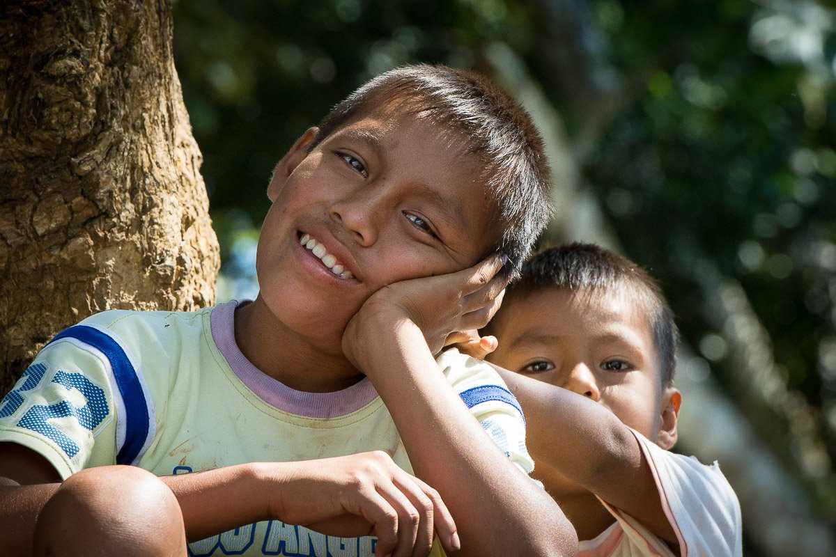 At the trail, local guides were waiting to escort us through the jungle. Little children gathered around us, greeting us with lovely smiles—an excellent way to begin our hike through the tropical forest of tierra firme. A great part of the Amazon Basin remains under water for almost six months of the year. This type of forest is called varzea forest. But the water level does not reach Casual Trail, because it is part of mainland, which is called tierra firme.