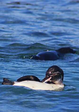 We enjoyed seeing three species of parrot fish (blue chin, bicolor and bump head). While looking for sharks we found a couple of white tip reef sharks resting in the underwater caves. We also saw a baby sea horse (Pacific sea horse) within the algae and later swimming in a clear vertical column of water. Swimming with the Galapagos penguins was the highlight of the trip. It’s just incredible to see penguins next to a tropical lava field with cacti in the background.