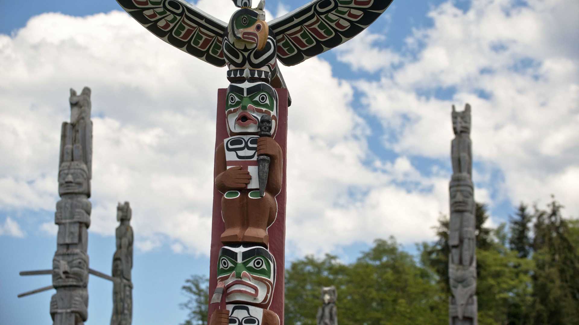 Our entire day would be spent in Kwakwaka’wakw territory and to begin our day in this old village site was just the beginning of a circle that would bring everyone on the National Geographic Sea Bird through the past and today and into the future. After honoring the ancestors of this ancient village site with a blessing way and having our elder and guest drop a very old trade bead into the sea…our Captain slowly pulled away and turned the National Geographic Sea Bird around heading back towards Cormorant Island and Alert Bay where we would spend the rest of our day. At approximately 12:30pm our ship and gangway were made ready for disembarkation from the Government dock located in the center of Alert Bay. Lovely large clouds were beginning to fill the sky and for those of us interested there was a chance to photograph the original ‘Namgis Burial Grounds. Old and new totems standing together wonderfully lit in sunlight with a backdrop of huge white clouds. Walking back and forth many a guest with camera enjoyed our first photographs in Alert Bay. Gathering together our group either walked or rode in a van to the U’mista Cultural Center where we would be escorted by Lillian Hunt through one of the finest collections of elaborately carved masks, depicting the Potlatch ceremony of the Kwakwaka’wakw people.
