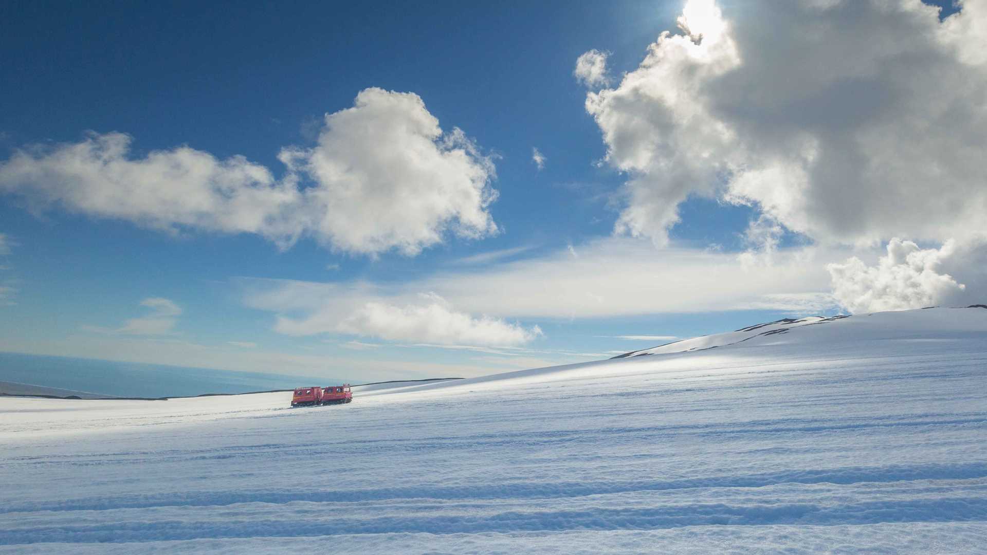 Clear sunny skies presented the perfect conditions for exploring the Vatnajökull glacier. Although for the super Jeeps driving up the glacier, the snow proved to be a little softer and trickier to drive through. The weather stayed favourable for our trip to the beautiful black sands and icebergs followed by a visit to Jökulsarlon, the large lagoon left in front of the glacier as it retreats rapidly back. Our day finished off with a 19:40 arrival back at National Geographic Orion, which meant dinner was ready straight away. Afterward, we enjoyed a very entertaining musical revue put on by the crew, performing some old favourites (including some favourites no one would dare admit were favourites).