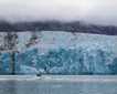 At dawn we entered Endicott Arm. Like all salty bodies in southeast Alaska, this is a fjord, but it is one of the most intense in the region. This is because Endicott, like Rudyerd Bay, cuts so far into the coast that it lies in granite and related rocks. Glaciers carve these rocks into the most beautiful forms. Huge domes towered over us; great cliffs, grooved by the passage of the glacier’s stony belly, rose hundreds of feet from the waves. Dozens of frothy falls tumbled through the trees. Mountainous horns pierced the sky and glaciers filled alpine valleys, and one, at least, touched the sea. Icebergs floated in water colored a beautiful milky jade. More and more bergs appeared until we could see the glacier in the distance. At that, we dropped boats for an intimate view of the ice. We sped by bergs inspiring notions of many a sea creature. We saw icy swans, whales or dragons. Some bergs were huge, blue and hoary, scalloped or pierced into endless sculptures. And at last we approached the glacier: Dawes Glacier flows five icy miles from the Stikine Icefield, and its face is three-quarters on a mile wide, and at least twenty stories high. And from this face we saw great chunks of ice fall, splashing up fountains of spray, roaring, and rocking our boats in vast but gentle swells.