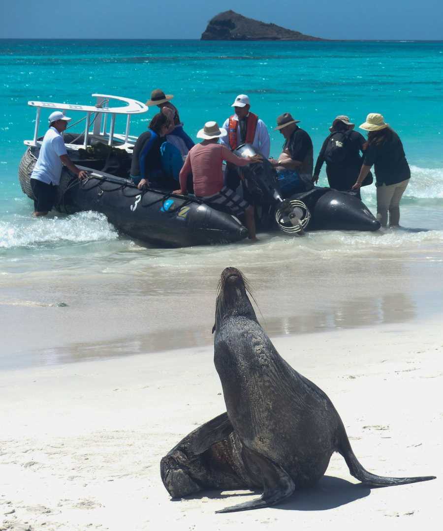 A surprise visit by a Galápagos hawk, just a few feet away from us was awe-inspiring. And don’t forget the smaller feathered denizens: three species of Darwin’s finches (small-beaked, grey warbler and large cactus), Española mockingbirds and Galápagos doves.