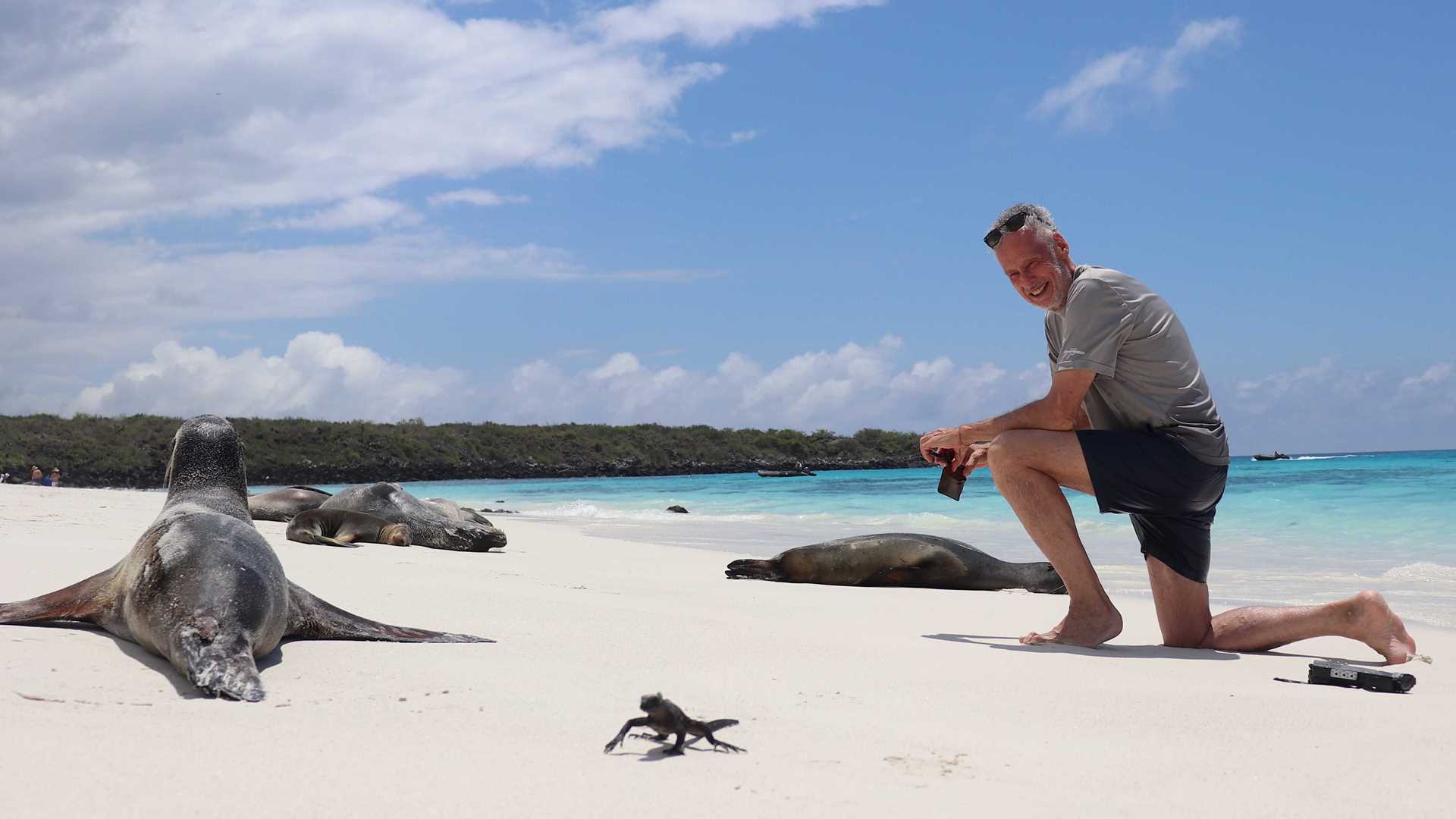 The day started at beautiful Gardner Bay with a sunrise that took our breath away, with cotton-candy clouds and the ocean calm as a cup of tea. The morning was filled with water activities starting with kayaking and then snorkeling at Gardner Islet. It ended at a flawless white sand beach, home to a colony of Galapagos sea lions. In the afternoon, we disembarked at Punta Suarez where we hiked along sea bird and marine iguana territory. One of the highlights of the hike was witnessing the laying of an a waved albatross egg, something very rare to see.