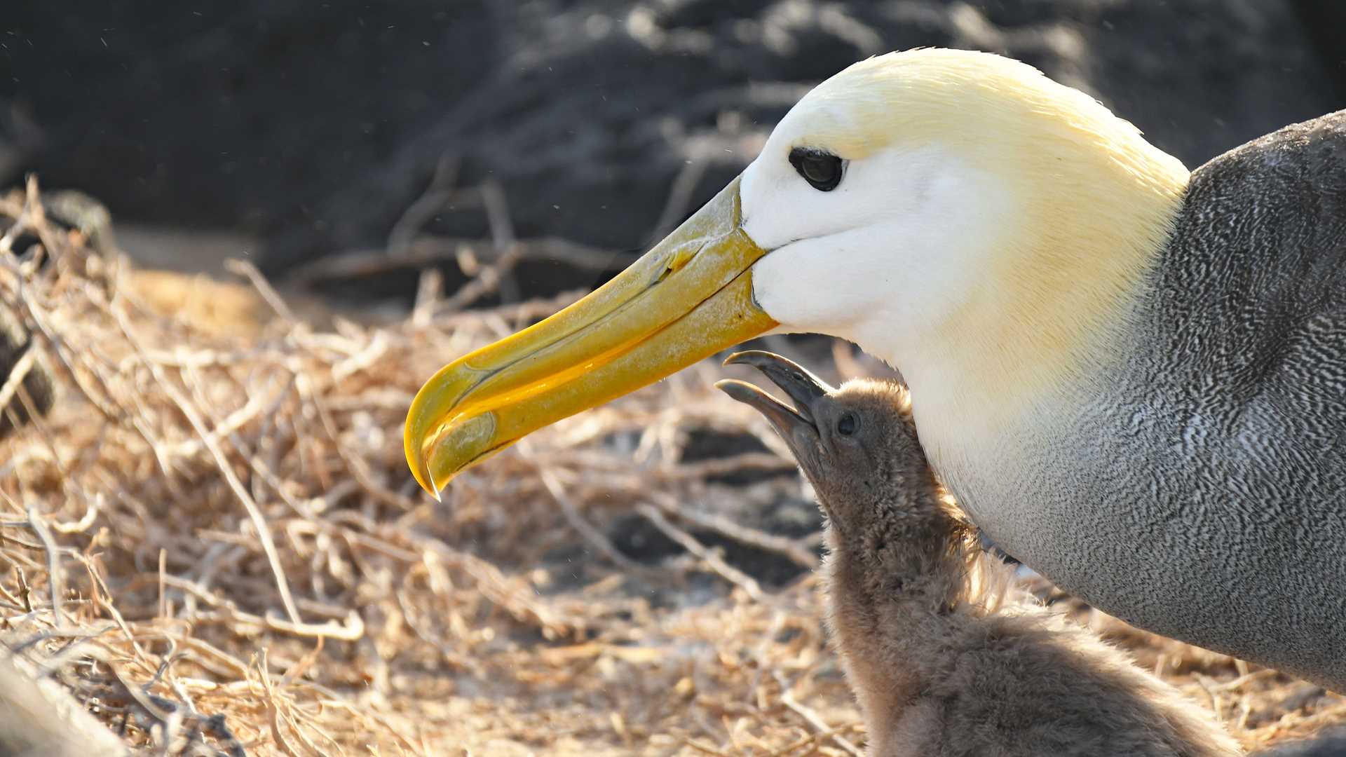 In the afternoon we moved to Punta Suarez. This site is considered the jewel of the crown, because as soon as you walk a few yards, you see many varieties of animals with every single step you take. We had a glorious time exploring that amazing place. We found albatrosses mating, dancing, and feeding their babies. We encountered blue-footed boobies nesting just a foot from our trail, hawks hovering in the air, Nazca boobies nesting, marine iguanas basking, and many finches getting seeds to eat. The sunset was spectacular — a great finale for such an amazing day in this paradise.