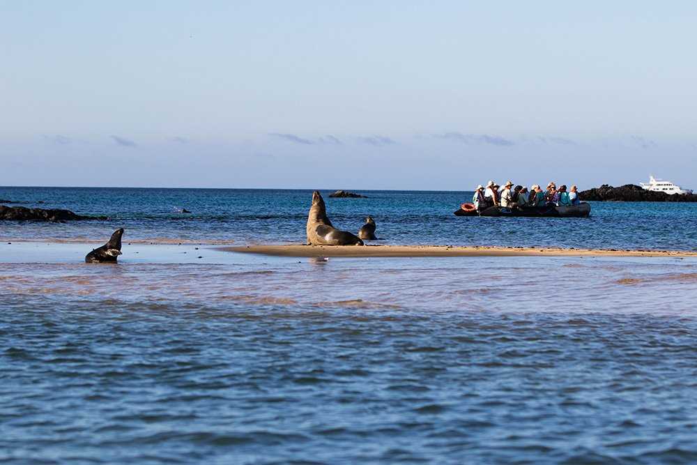 At mid-morning after breakfast we explored a satellite island on the north side of Floreana. This small islet is called Champion. It is actually an old volcano, today it is home for sea birds such as: blue footed boobies, Nazca boobies, brown pelicans and many others including a colony of Galapagos sea lions. Here at champion we found the elusive Floreana mocking bird. It has become extinct on the main island due to the presence of animals like cats and rats.