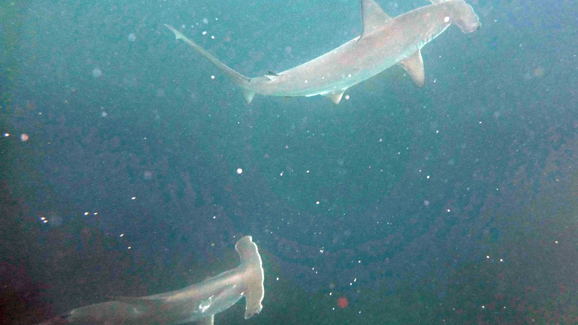 After visit the island, we had chance to snorkel along the vertical cliffs. Colorful fish such us steel pompanos, yellow fin mullets, Moorish idols, manta rays, spotted eagle rays were the delightful of our guests; but probably the best part of the snorkeling was when we observed a group of hammerhead sharks that swam indifferently close to us; we saw more than four, all of then more than 3 meters long.