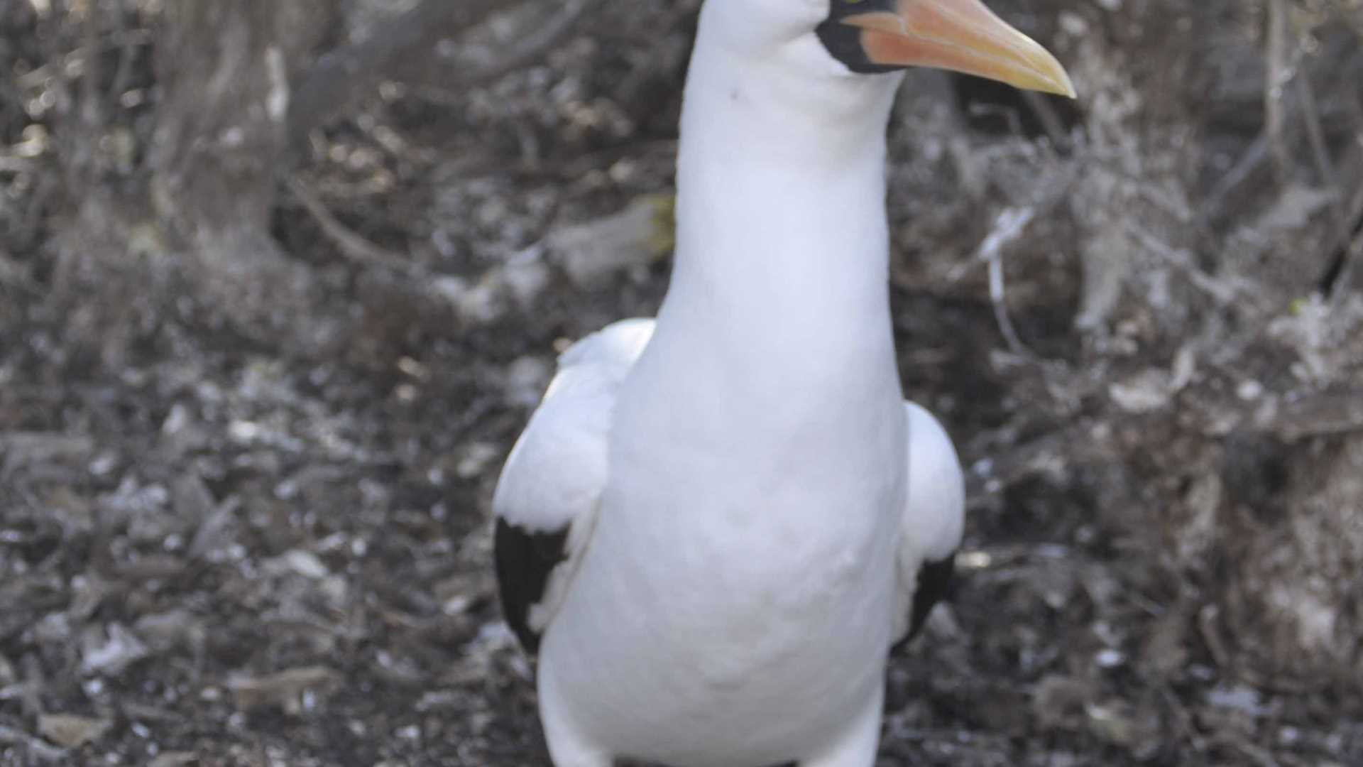 After a night sailing to Genovesa Island, anchor was dropped and soon we started our activities with early kayaking along the collapsed caldera cliffs observing sea birds start their day, too. Swallow tailed gulls, Red billed tropic birds and Shearwaters joined us as we paddled. As we snorkeled, different varieties of fish and sea creatures showed their glowing colors. Later at Darwin Bay and Prince Phillip’s Steps we had to be aware not to step on Nazca booby nests. Red footed boobies hung on the mangroves while we took as many pictures as we could.