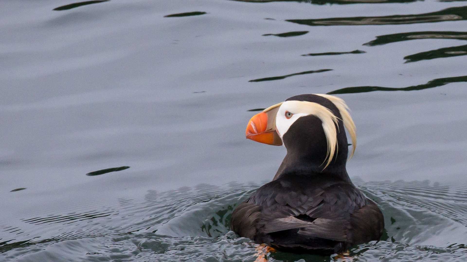 After we were joined by one of Glacier Bay’s national park service interpretive rangers as well as a Tlingit cultural interpreter, National Geographic Sea Lion cast off and headed into the park. The ever-present clouds of our expedition finally lifted as we cruised north, resulting in stunning views of the coastal mountains – including Mount Fairweather, soaring nearly three miles high above us. A photography and viewing stop at South Marble Island allowed our birders to check horned and tufted puffins, pigeon guillemots, and black oystercatchers off their lists. In the waters nearby, sea otters backpaddled while, from the rocks, a raucous group of bachelor Stellar sea lions roared to greet us.