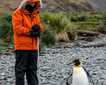 Long hikes were offered as well as Zodiac cruising along the scenic shores. The hikers saw fur and elephant seals along the cobbled beach. They took a steep ascent through large tussock grass, the local 4- to 6-foot-high tufted grass, until reaching the short tundra vegetation where there were villages of gentoo penguins and great views. On the water, guest also saw fur and elephant seals, as well as waterfalls and a couple of icebergs. A single, molting Magellanic penguin was spotted and later, was killed and eaten by a giant petrel. And yes, that is the way nature is.