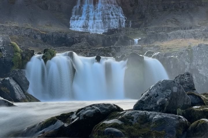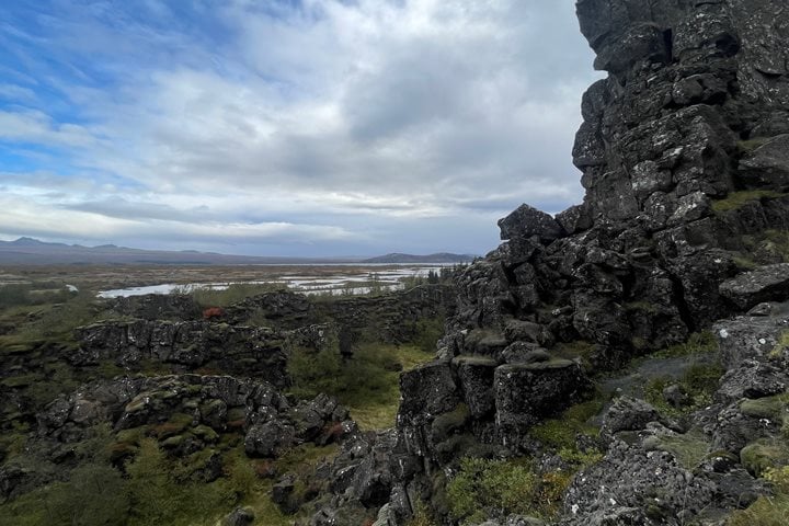 On the longest walk, we traveled several miles inland over cushiony tundra to overlook the almost Martian landscape of a braided river flowing from a glacier hidden in the low clouds on the horizon. While attempting to circumambulate an inviting-looking lake on the edge of the outwash plain, we encountered an unusual combination of very soft sand and layers of ice forming in the thin layer of water at the surface as well as inside the sand. Our footsteps were exceptionally crunchy, and the ice formations were a filigreed beauty.