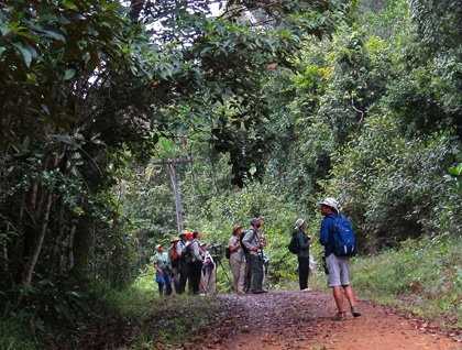 After hiking for a couple of hours we made a brief stop at a small farmstead that is part of a new conservation effort in conjunction with ecotourism. The mission is to offset carbon emissions by managing the forest resources rather than just exploiting them… that is, do not just cut down a tree, cut it down if you must, but plant one or two new ones as well and hopefully have visiting eco-tourists contribute some income. Simple, yes, but getting closer to carbon neutral, at least in the forest. In this case carbon neutral equals no new loss of species, hopefully.