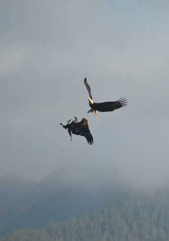 Our day in the Inian islands began with Zodiac cruises in and around the small group of islands. We had an opportunity to ride the tides, observe, photograph and most importantly, be present when the very rich waters of Cross Sound fed so many. Bald eagles flew through the sky, chasing each other and other birds, all vying for leftovers from a harvest that a Steller Sea lion had brought up from the depths of Cross Sound. We watched a sea otter dive and bring to the surface a basket star and enjoy its own private feast on its belly. We watched smaller birds swooping in on sea lions, each bird hoping for a tiny scrap left over from the flinging of prey by the Sea lion! The trees along the islands were filled with Bald eagles, all watching with that “eagle eye” for a tasty bite of food left on the surface of the sea.