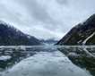 Dinner found us back onboard as we struck east toward Lynn Canal. The mist and rain of the day evaporated into brilliant sunshine. An informative presentation on killer whales by marine researcher and Lindblad/National Geographic naturalist Adam U was postponed as a pod of playful Dall’s porpoises dropped in for a bow surfing session. These sleek black-and-white cetaceans are among the fastest on the planet, topping out at 35mph for short bursts. They soon grew bored with our speed and zipped off to leave us marveling at the ice peaks sliding past.