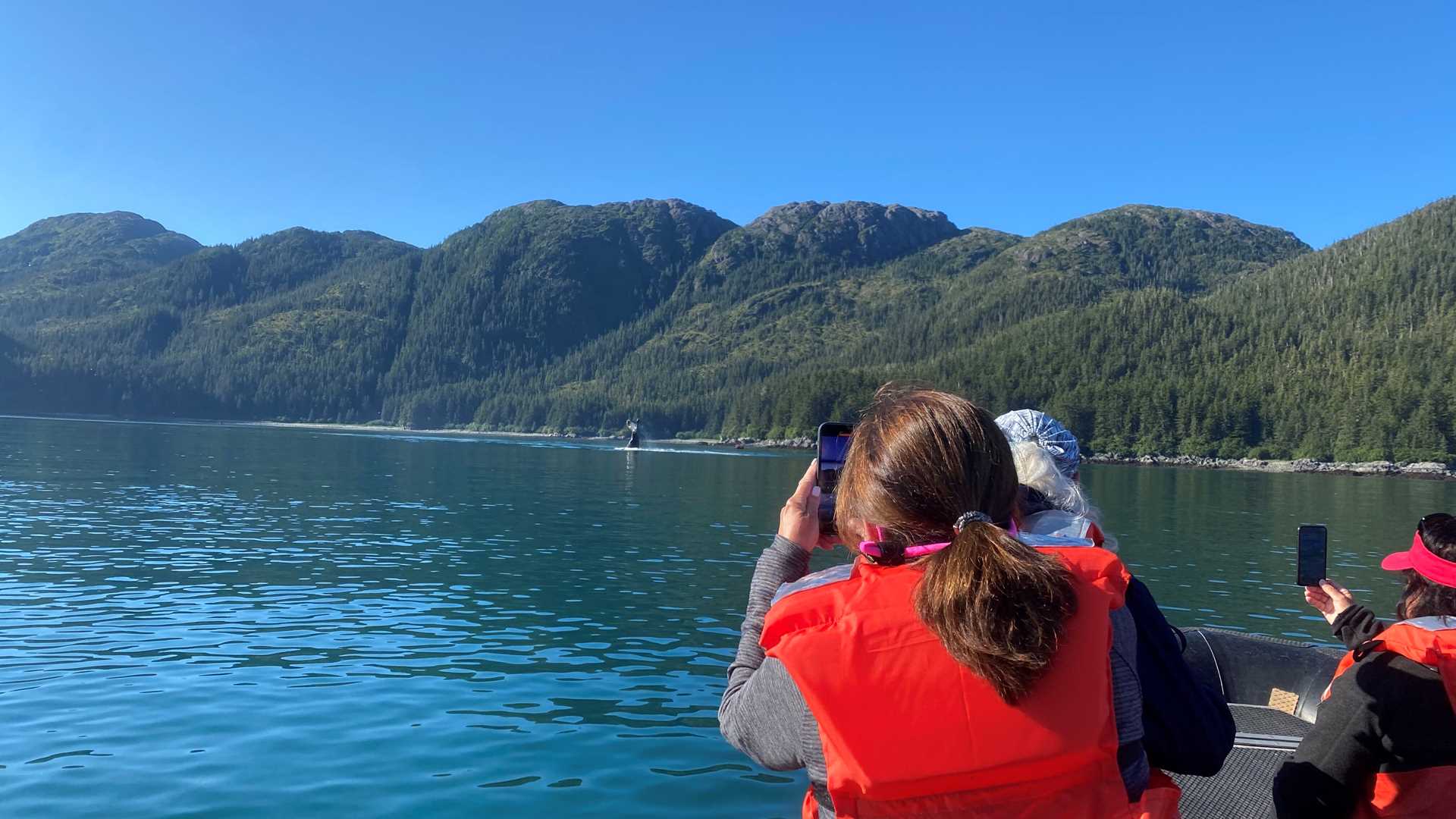 We spent the morning in the Inian Islands where the weather once again gave us a warm and beautiful cloudless day. The wildlife seemed ready to show off for us this morning. We were treated to breaching humpback whales, orcas, sea otters with pups, and resting harbor seals. Curious sea lions even took a break from their hunt and inspected the Zodiacs.