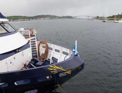 Once we were all gathered in Inverness, the capitol city of the Highlands, our coach headed along the northwest shore of Loch Ness then over the mountains and down Glen Shiel, finally arriving at the Kyle of Lochalsh. Here we found our little ship, Lord of the Glens, which would be our home for the next week. Captain Jim Still, Hotel Manager Brian Copland, the ship's crew, and the National Geographic/Lindblad staff welcomed us aboard.