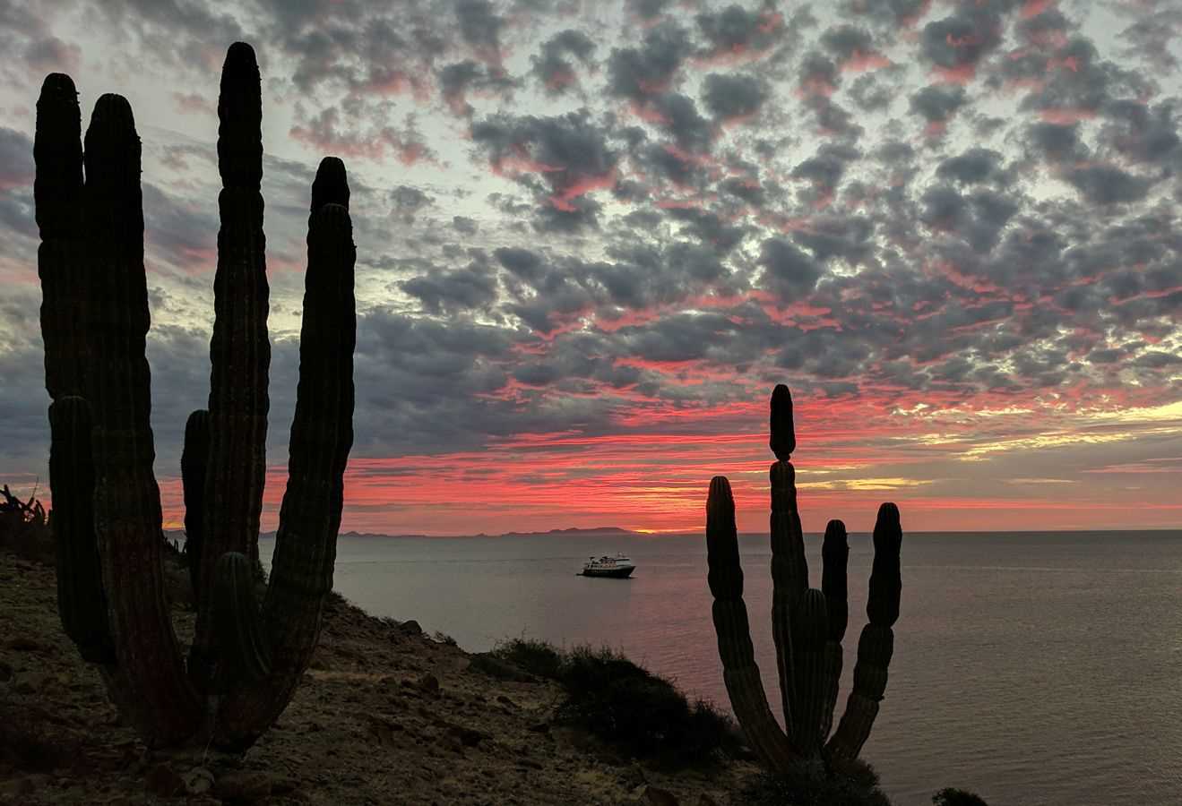 Before dawn, ambitious adventurers departed for a landing at Isla San Estéban for an opportunity to watch the sunrise from shore. This scenic island was ideal for after-breakfast hikes as well. Later in the day we stopped at a seabird nesting island for expedition landing craft cruises to view terns, Heermann’s gulls, and other birds.