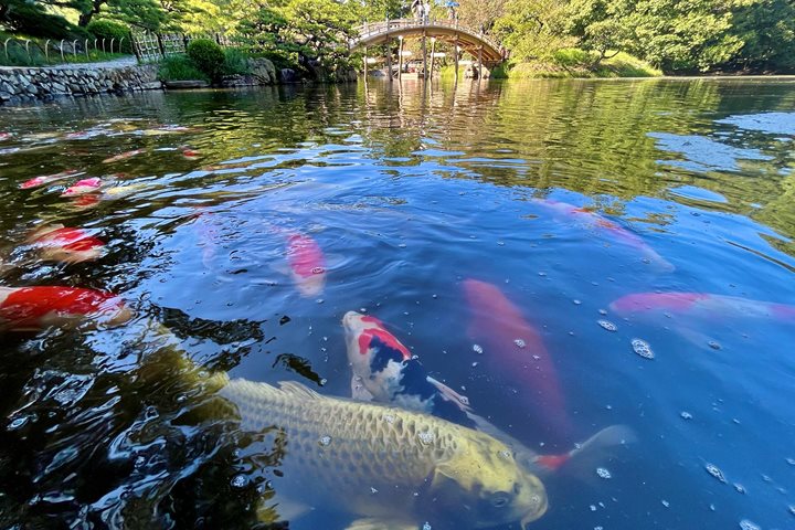 It is hard to explain the calm, peace, and joy experienced when wandering around the fantastic Japanese garden of Ritsurin, one of the most famous Japanese gardens. Walking under the old pines, we admired the wooden bridges and fed the koi. We were transported to the Samurai Period today on yet another gorgeous day in Japan.