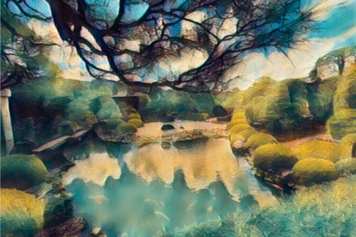 After a beautiful sunrise and approach to the port of Sakaiminato, we set off to explore lovely Matsue with two primary destinations and a delicious lunch in between. The Matsue (or Black) Castle is one of only a few remaining original wooden castles in Japan. Set in a gorgeous setting, those of us who climbed the steep stairs to the top were rewarded with panoramic views and a cool breeze. The Adachi Museum of Art was our second highlight. Not only was there an incredible collection of art including the stunning Autumn Leaves , but the gardens were the art. These gardens were my favorite of the entire trip, and they were incorporated into the museum concept. Gardens and nature are art! Photo caption and photographer: Watercolor filter of the gardens at Adachi Museum of Art. Photo by Mike Greenfelder