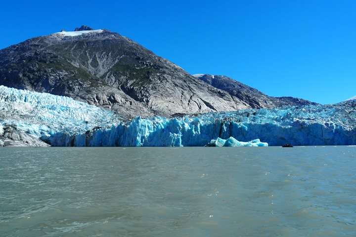 We began our first full day aboard National Geographic Venture by sailing through beautiful Holkham Bay into Endicott Arm. This narrow fjord southeast of Juneau is marked by cascading waterfalls and breathtaking indicators of glaciation and ecological succession. The icebergs, bergy bits, and turquoise, glacial silt-fed waters of the fjord sparkled in the unexpectedly bright sun as we spent our morning navigating towards Dawes Glacier. We received basic mandatory training on hiking in bear country and safely loading Zodiacs and kayaks, and we were introduced to our Expedition Team. We spent the rest of our morning and early afternoon in Zodiacs, exploring the fjord and the towering, active Dawes Glacier! Throughout the journey, we spied curious harbour seals, watched glaucous-winged gulls forage, heard the rumbling of calving ice off the tidewater glacier, and found our Zodiacs boarded by benevolent Vikings! Guests warmed up after their time on the water with hot cocoa and a hearty lunch of chili. We spent late afternoon preparing for a day in Petersburg tomorrow, and we learned new photography skills from our certified photo instructor. After a lively cocktail hour, recap, and dinner, we ended our night by watching Petersburg: The Town that Fish Built in preparation for an exciting and packed day in Petersburg.
