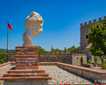 Our next stop was the modern capital of Tirane for a traditional lunch at Bujtina e Gjelit (House of the Rooster). The family that owns the restaurant has their own farm that provides organic produce and meats. The array of choices (including vegetarian and vegan) was astounding from a wide selection of meze such as stuffed grape and cabbage leaves, beets, tarator (yogurt and cucumber dip) and small cherry tomatoes that were an explosion of sweetness in our mouths. There were hot dishes as well: roasted meats with potatoes, sautéed peppers with onion and tomato, byrek (the ubiquitous Balkan cheese pie), a spinach and cheese casserole, and, of course, cheese and homemade bread. Lunch ended with traditional baklava and the summer treat of watermelon.