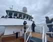 After the talk, at 10:30 A.M., we had a swim in these fabulous waters. The water was crystal clear, warm, and the high salt content made it virtually unnecessary to move. You just bobbed up and down. I didn’t count how many were in the water, but it appeared most of us took advantage of this chance to swim right off Sea Cloud. The swim was restorative and perfect.