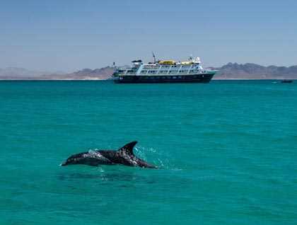 The National Geographic Sea Bird raised the hook and headed south towards Bahia Bonanza. This long sandy beach is facing the east side of Isla Espiritu Santo. Here we enjoyed the clear waters for swimming and kayaking. We even had some improvised Zodiac cruises to take a close look at a group of bottlenose dolphins that showed up after anchoring. Different hiking groups took off to explore this magnificent island. For some, a relaxing moment walking along the beach was the perfect farewell to the beautiful Gulf of California.