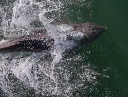 When we reached Mag Bay, the peaceful waters that greeted us were a welcome relief from the consistent motion. The entrance to the bay is aptly named La Entrada, “the Entrance.” With the sun on our faces, and the serenity of the water, we all mustered on deck just in time for our first gray whale sighting of the expedition. Even after so many whale sightings in the previous days, the sight of this new species was as exciting as our first whale. As Carlos exclaimed, “Gray whale!” all hands rushed to the rail to see two gray whales surface near our ship. They submerged with a showing of their flukes, and we headed onward toward the narrow channel called Hull Canal.