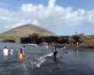 During lunch we cruised out through La Entrada and turned south into the Pacific with gentle swells behind us as we made our way towards Land’s End at the tip of the peninsula. Black-vented and pink-footed shearwaters used the air pushed by waves to get their lift. Red-necked phalaropes passed in flocks of 50 or so, and a very dark peregrine falcon flew by thrilling at least 20 of our guests. Later in the day a minke whale breached several times showing its sharply pointed rostrum, white belly, and ventral groves. We don’t see minkes often, so for some of us it was one of the thrill of the day. Our ship continued south, pushed along with the four-foot, white-capped seas that later rocked us to sleep.