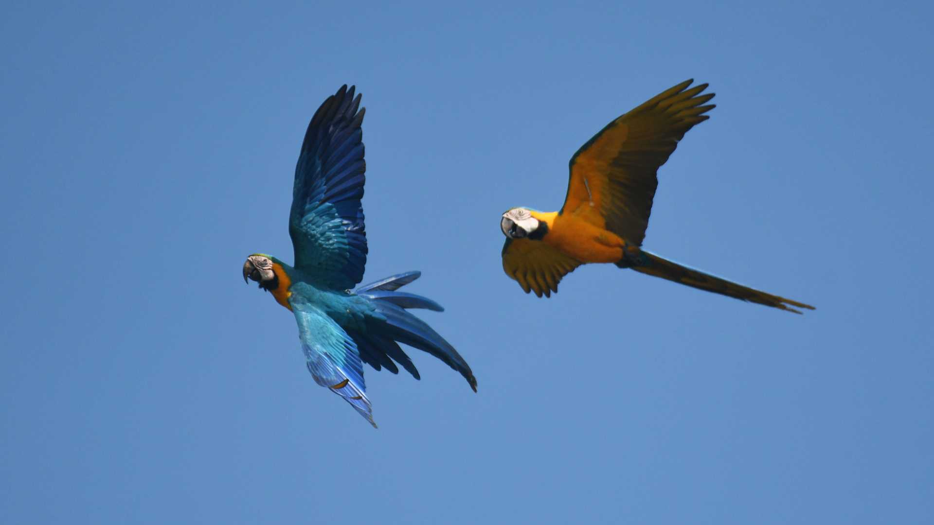 The first creatures we spotted were a flock of yellow-fronted macaws. They nest in very special areas, where palm trees have died and their trunks are hollow inside — the perfect ecosystem for breeding and surviving. Next we saw festive parrots; they are beautiful birds with brilliant colors. They have a very peculiar way of moving on the branches: they make steps side to side, and it looks somewhat like a funny kind of dancing. Later we also observed some raptors and herons, tiny birds such as anteaters, sparrows, tanagers, and some woodpeckers.
