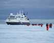 During the early afternoon National Geographic Explorer continued southward through large areas of loose drifting pack ice with lots of lounging Weddell and crabeater seals. Eventually Captain Skog brought us into Neny Fjord where he drove the ship into the “fast” ice (ice which is still frozen fast to the shore). A gangway was lowered, and the ice proved strong enough to allow us all to walk off the ship and out onto the frozen sea. A great experience for all involved. We had also reached our farthest south at 68 degrees 14 minutes of south latitude.