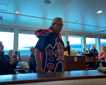 The afternoon was spent ship cruising out of the fjord, and our excellent bridge team navigated us to a spectacular waterfall, going nose in for us to feel its presence. A few drops of rain did not stop our guests from enjoying this view.