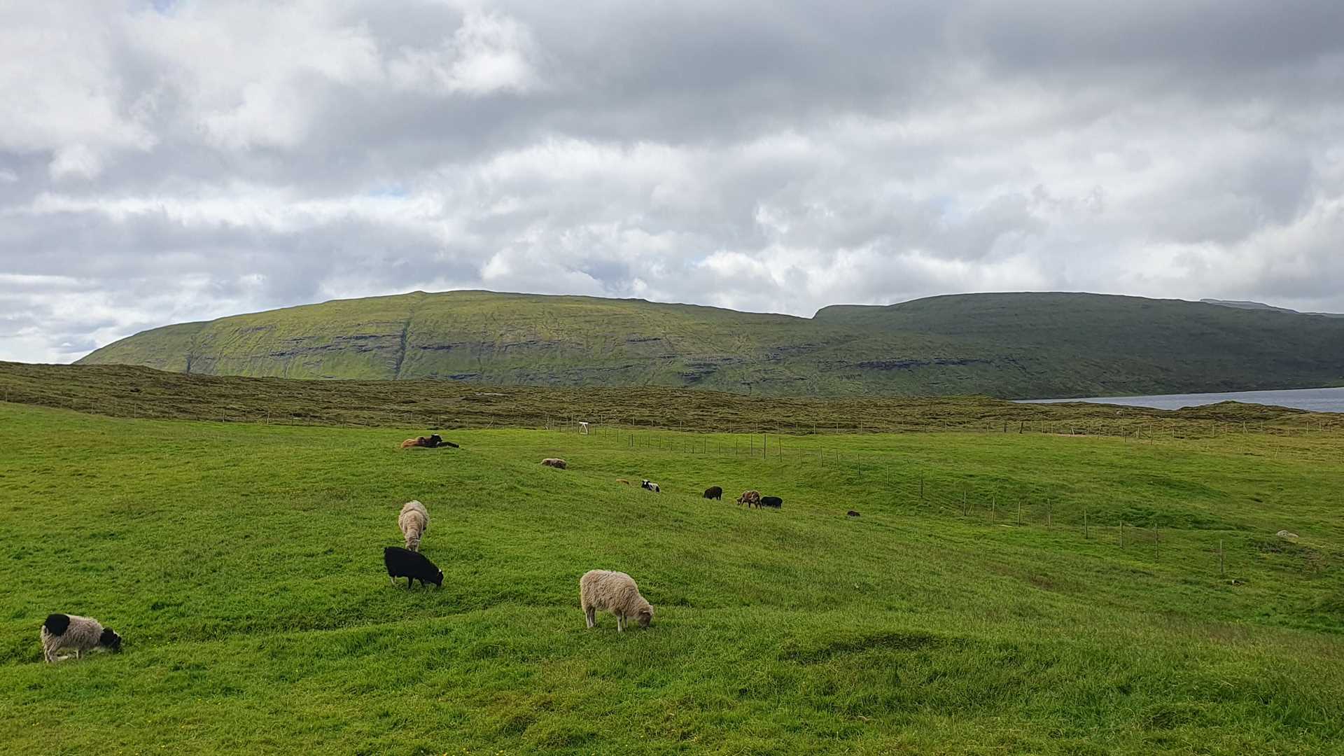 We docked at Miðvágar, from where we were taken by coach to a beautiful hike along a big lake. Sheep, flowers, and plenty of volcanic rocks awaited us along the trail, and those of us who made it to the end were rewarded by stunning views down the volcanic cliffs. We could even explore the waterfall where the lake water drops straight into the ocean.