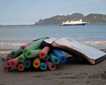 As we break through to the outer coast, a light breeze cools us from the strong equatorial sun that is beating down upon us. As we pass a breeding colony of frigatebirds, we observe a female magnificent frigatebird make a few passes overhead before landing in front of us. After a persistent squawk from the chick, the mother regurgitates an instant meal for her chick, and then takes to the air again to continue to search for food. Various skeletal remains along the coast remind us that this is the uninterrupted path of life, and survival can be a struggle for these creatures. Bobbing upon the turquoise waters, we return to the ship to continue our navigation west.