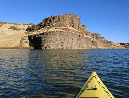 This glorious day started early for the crew of National Geographic Sea Bird. Captain Kay, the officers, and deckhands brought us safely through the Lower Granite Dam (around 1 a.m.) and the Little Goose Dam (around 6 a.m.). A few were up to watch, but most came up to the decks for sunrise yoga class at 7 a.m. After sufficient stretching, sipping smoothies and coffee, and a wonderful breakfast, our group disembarked on a morning of expedition landing craft cruises, waterfall viewing, and kayaking. There were numerous birds abound including a golden eagle. Also, one lucky group spotted a porcupine up in a tree.