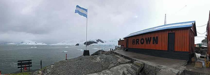 The Argentinean Base Brown was our first destination this morning for hiking and a zodiac cruise. Located in beautiful Paradise Bay, this base was originally built for naval purposes and over the years has been transformed into a scientific base and a popular destination for ships visiting Antarctica. The hike to the top of the hill offered a spectacular view of the surrounding mountains and glaciers. Guests were treated to wildlife and an up close views of a tidewater glacier during the zodiac cruise.