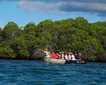 At the end of the inlet, a mighty waterfall roars through the trees, showering and surely delighting, the dense foliage flanking the incoming creek.