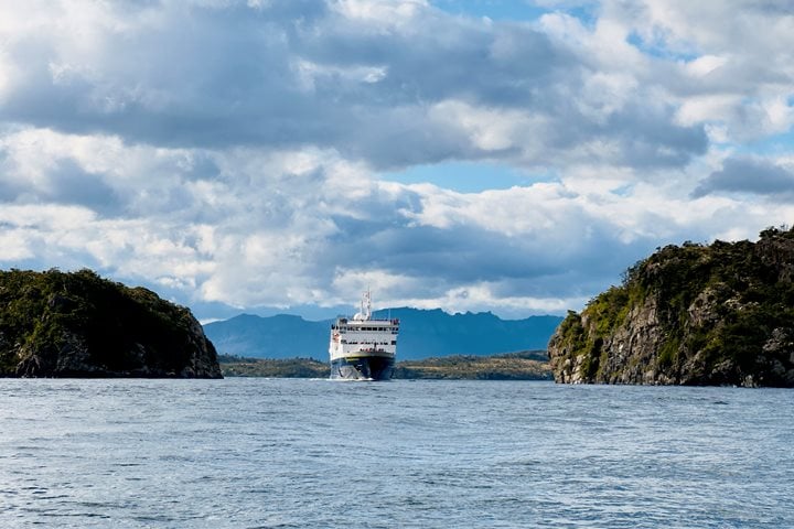 The wind was so strong overnight that we arrived slightly delayed to our destination of Puerto Profundo. The dive team went scuba diving in some gorgeous kelp forests while guests got nearly as wet during two rounds of particularly rainy Zodiac cruises. Our surrounding scenery was so majestic, and a few lucky people caught glimpses of bow-riding Chilean dolphins! Back on board, we dried out, ate lunch, and cruised to our next breathtaking destination. At Seno Glacier, we all set out to explore the fjords by Zodiac cruises and even ventured up a riverbed. The rain continued to pour, the many waterfalls gushed, and wet fingers struggled to take pictures on phones as we all became drenched. A few lifejackets even got so wet that they automatically expanded!