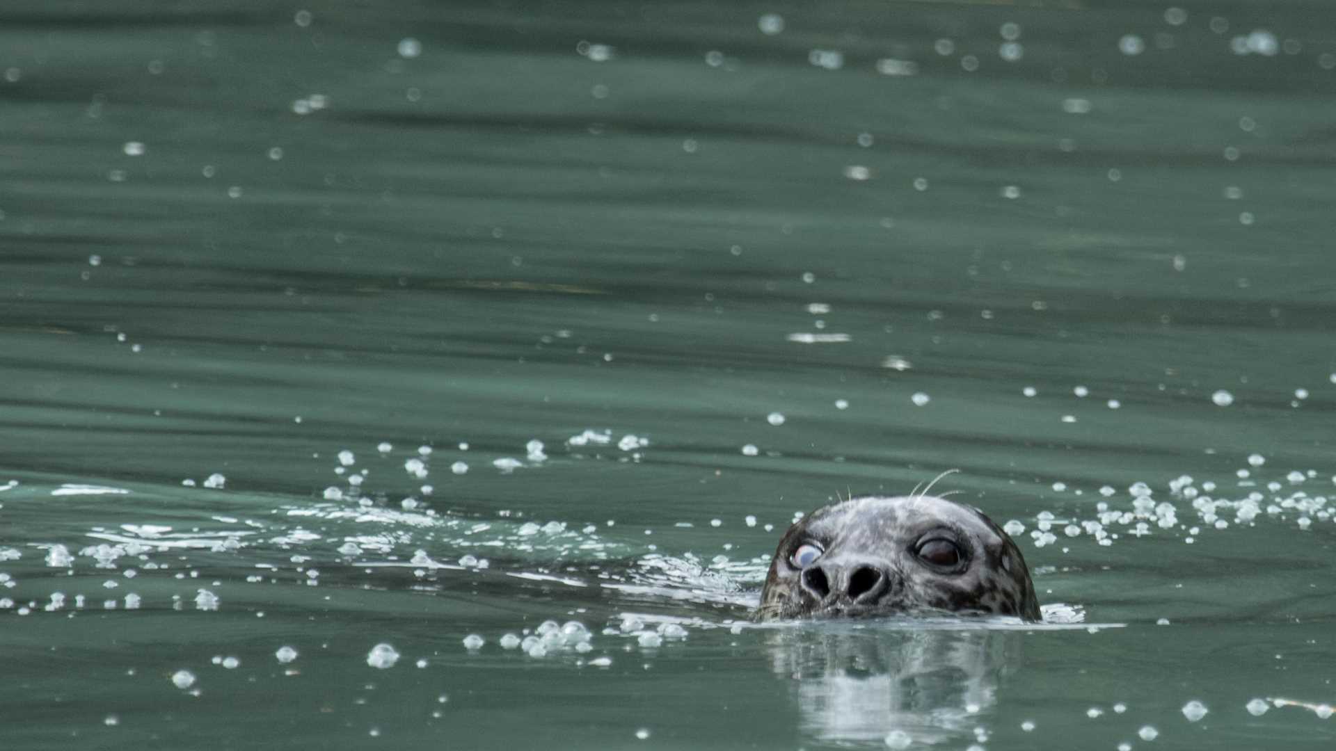 The remainder of the day was a superlative taste of adventure spent in the turquoise waters of Takatz Bay. Not only was the sky clear, but, the sun was out in full force which was much appreciated by the multitudes of kayakers and hikers. We arrived during high tide and by the end of the afternoon the far end of the bay revealed an abundant salmon stream as well as an exposed mud flat, which was covered in gulls feeding on the recently deceased salmon. The kayakers as well as expedition landing craft cruisers had numerous sightings of harbor seals devouring the incoming salmon. The hikers, or better yet, “bushwackers” followed a fresh bear trail into the depths of the forest where one of the seasoned naturalists claimed to have seen the largest western hemlock of his life.