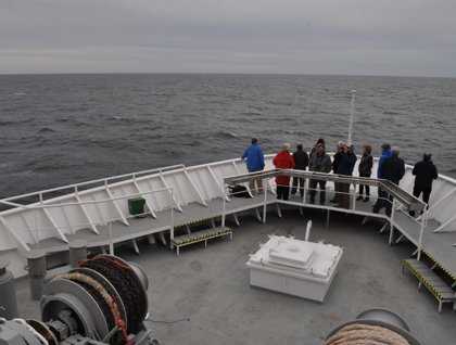 Early-morning risers make their way to the bridge to get a good vantage point for spotting the seabirds and mammals that might be encountered as we steadily head south. They are rewarded by large numbers of seabirds and occasional mammal sightings. Each new sighting elicits lively exchanges from all those present. In between times it is an opportunity to share other anecdotes and some good laughs.
