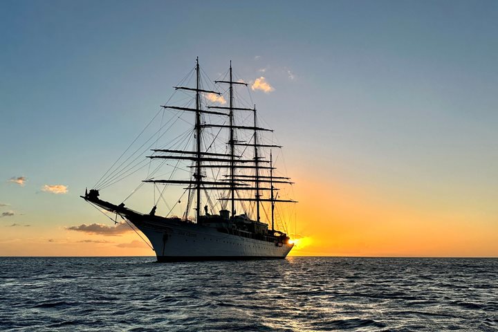 Tonight we had the great pleasure of formally meeting Captain Evgeny Nemerzhitskiy and his officers. Our captain has a distinguished career and was captain of the famous Russian naval training ship the Kreuzenstern and for many years the Sea Cloud II. We adjourned from the lido and had a lovely Captain’s Dinner. The sea was gentle and rocked us all to a welcome rest. Tomorrow morning we visit Dominica, the “Nature Island.”